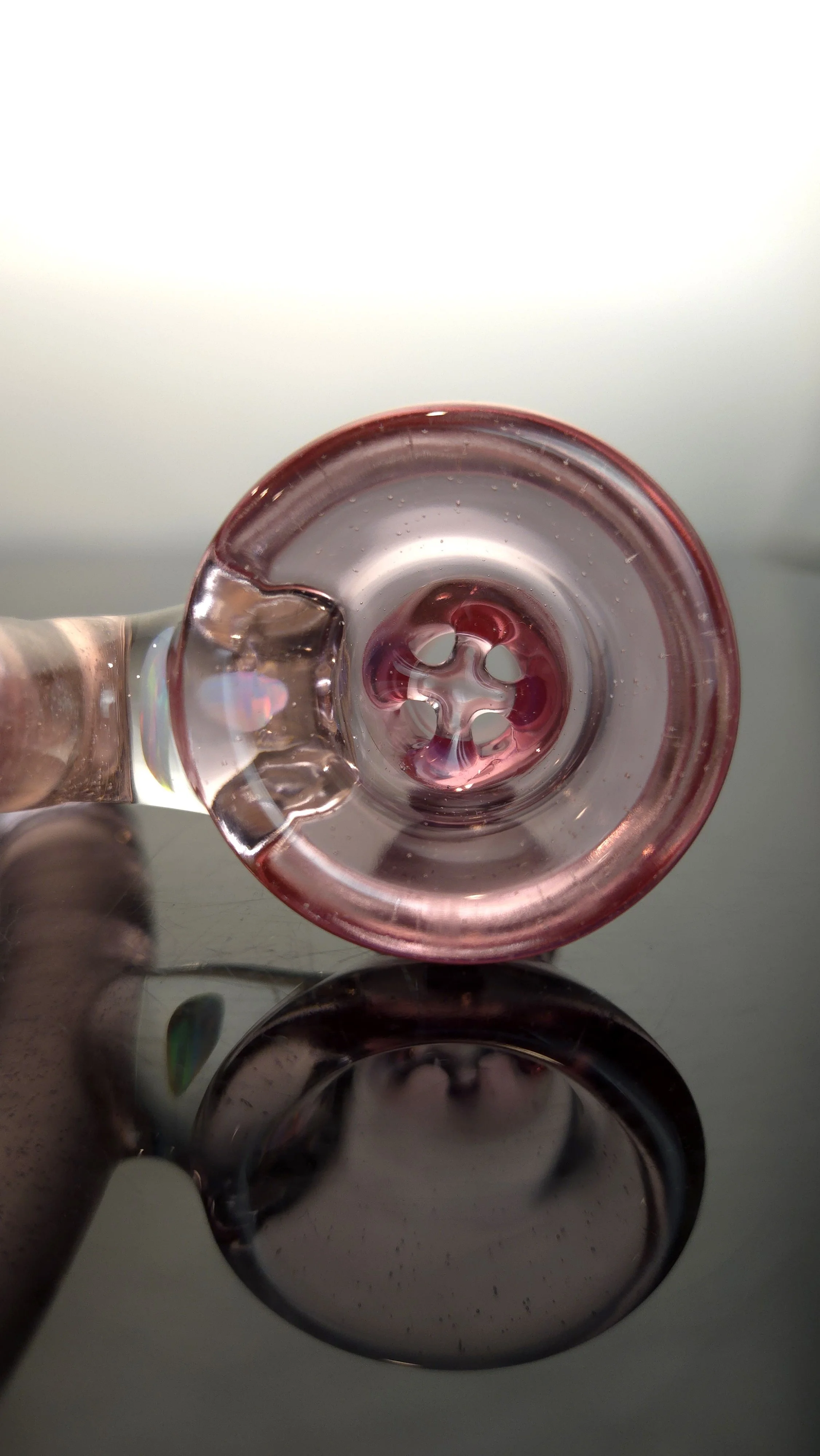 Fully worked 18mm 4hole made with my favourite pinks. Large pack with medium holes - this bowl has a stronger taper than usual, the bottom part with the ‘screen’ is more narrow than usual. Will make for excellent function.